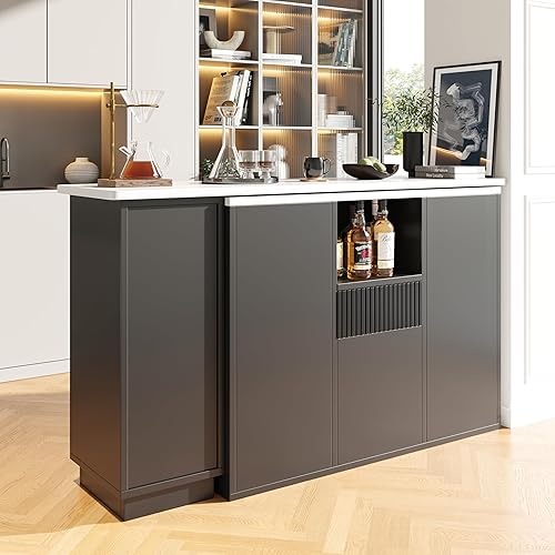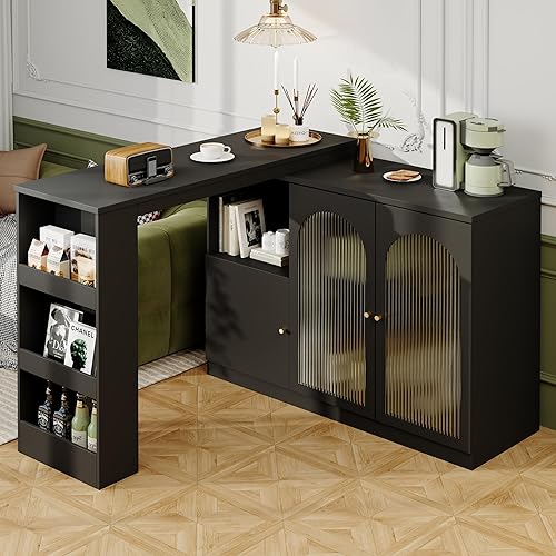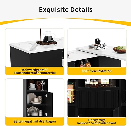 Table haute extensible rotative à 360° - îlot de rangement multifonction avec roulettes, 3 tiroirs et porte-collation pour cuisine, salon et table de bistro - 138-209 x 39 x 106 cm - Blanc