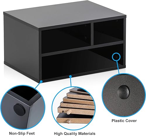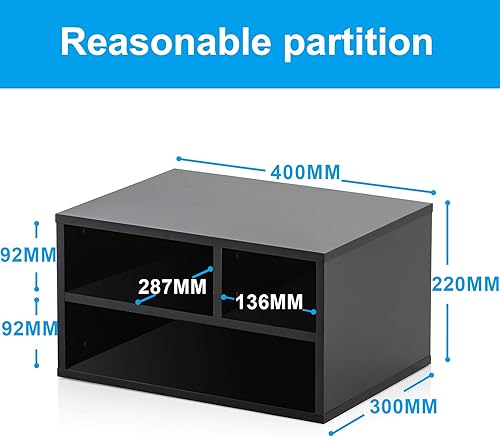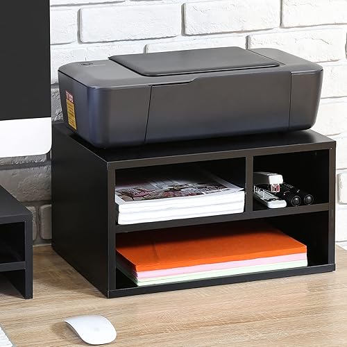 FITUEYES Organiseur Bureau Bois Noir avec 3 Rangements Fournitures Support d'Imprimante 40x30x22cm DO304001WB