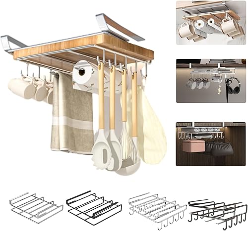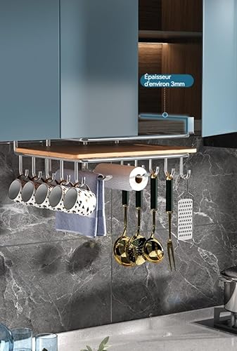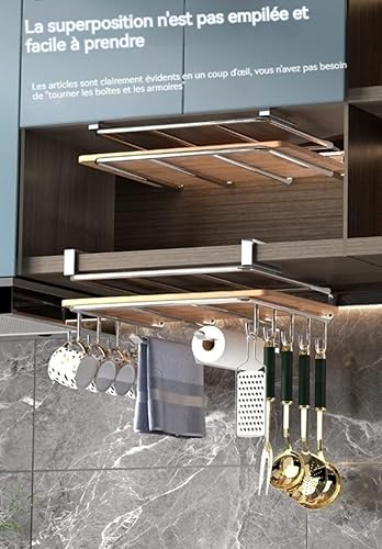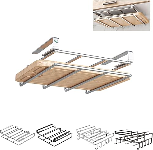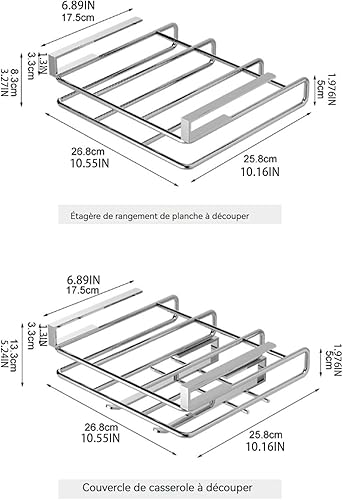 Générique Support pour Planche À Découper sous Placard,Organisateur Placard Cuisine,Étagère Porte-Planche À Découper en Acier Inoxydable avec Crochet,Organisateur De Panier De Rangement D'