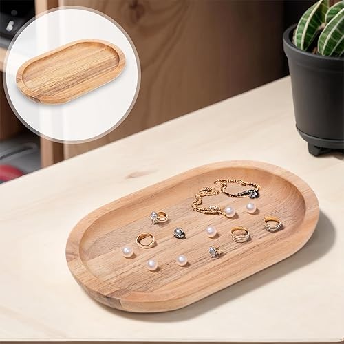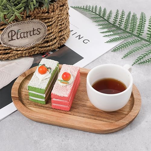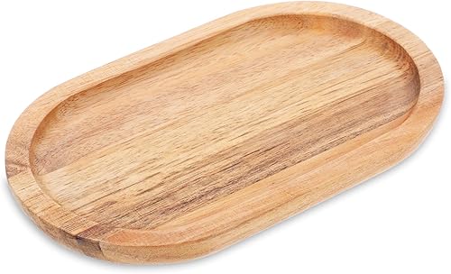 Piriuuo Plateau de service ovale en bois d'acacia - 20 x 12 x 1,5 cm - Marron - Pour pain, desserts, biscuits, thé, café, gâteaux, fruits, petits objets
