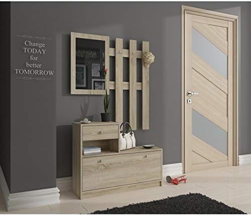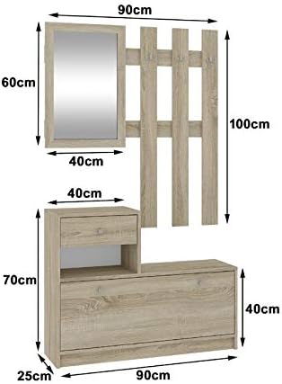 Adgo - Ensemble de meubles en bois pour couloir - 90 x 70/100 x 25 cm - Armoire à chaussures, cintres, tiroir, miroir, dressing - 4 couleurs (chêne Sonoma)