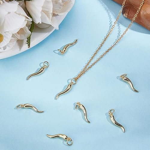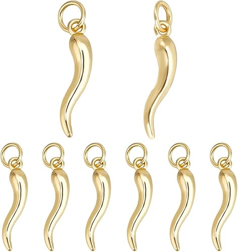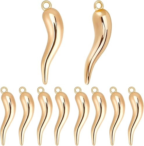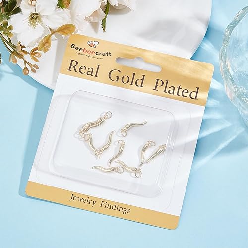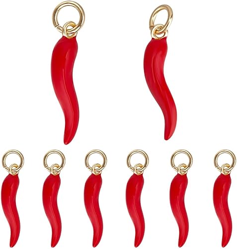 Beebeecraft 1 boîte de 10 breloques en Forme de Piment en Laiton Plaqué Or 18 carats et Émail Rouge 3D Breloques en Corne Italienne Cornicello avec Anneau de Jonction pour Bracelet Boucle D'Oreille