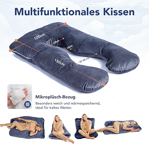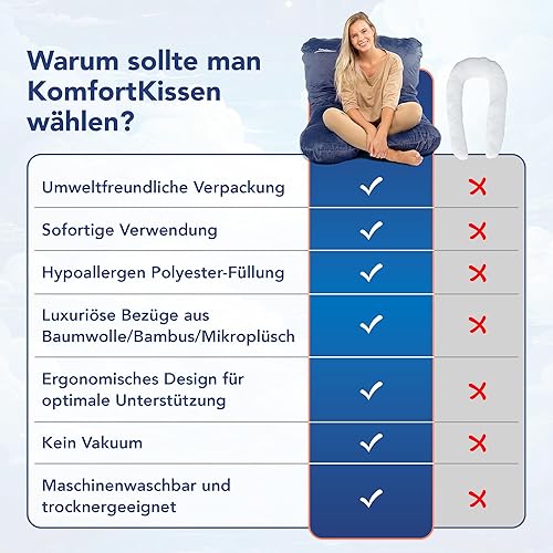 MKS KomfortKissen Original Coussin douillet, ergonomique et rafraîchissant, de qualité supérieure, pour le corps, pour dormir sur le côté, pour un meilleur sommeil, 100 x 150 cm, en micro-peluche