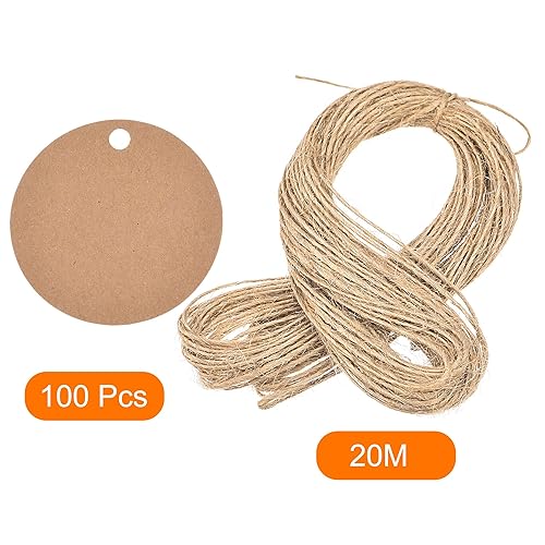sourcing map Étiquettes Papier Rond Suspendu Étiquettes pour Cadeau Étiquettes avec Corde à Ficelle Kaki 40mm Longueur 65.6 Pieds Paquet de 100