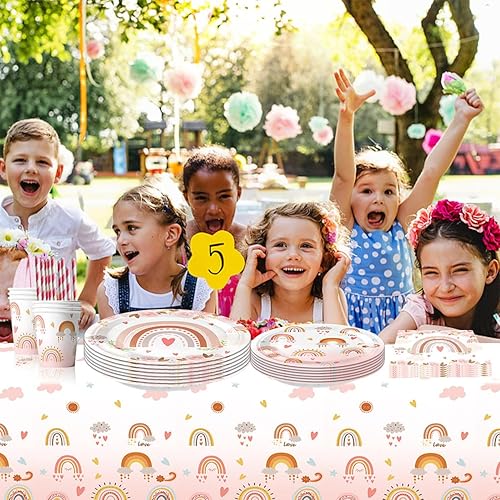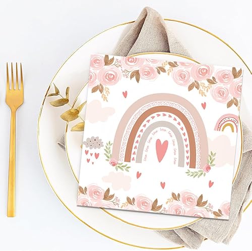 KOLZEMV 40 Pièces Serviettes, serviette papier, de Table Arc-en-Ciel Serviettes en Papier Boho Serviettes Motif de Fleurs Jetables Serviettes de Fête pour Baby Shower Anniversaire Filles Enfants