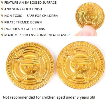 Bavooty Pirate Pièces d'or Enfants Jouets Le Trésor de Chasse Décoration de Fete, pour Les Enfants ou Faveur de Fête,Remplisseurs de Sacs de Fête 50 Pcs