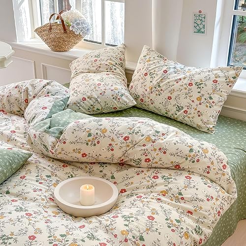 Covebett Housse de Couette Coton 140x200 Vert Fleurie Floral Colorée Parure de Lit 2 Pièces Adulte 1 Personne Doux 100% Coton Foncé Linge de lit avec Fermeture Éclair et 1 Taies d'oreiller 65x65cm