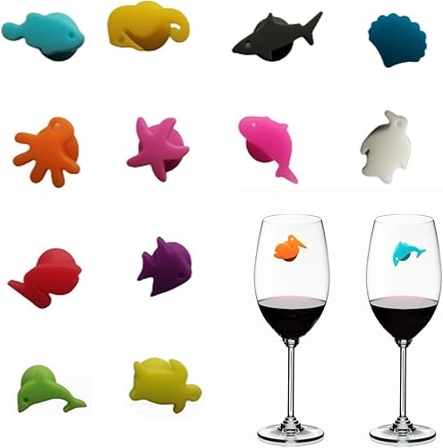 Spldsun 12 Pièces Animal Silicone Verre Marqueu, Réutilisables Marqueurs En Verre, Marqueur de Verre de Vin de Silicon, pour les Bars, les Fêtes, les Familles
