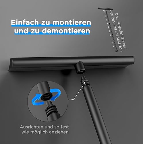 ecooe Raclette de douche réglable 30-61-89 cm - Noir - Raclette de sol avec support - 30 cm de large - Raclette à eau pour verre, carrelage, miroir, fenêtre, vitres de voiture