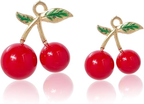 SUNNYCLUE 1 boîte de 32 pendentifs en Forme de Cerise 2 Tailles en Alliage Vintage Rouge Résine Or 3D Mignons pour la Fabrication de Bijoux Colliers Bracelets Boucles d'oreilles pour Femmes
