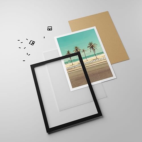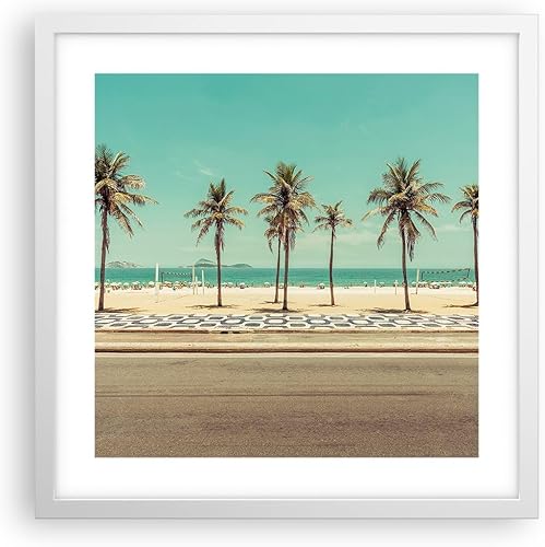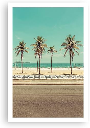 Affiche Decoration Murale Plage Palmiers Rio De Janeiro Moderne Poster Cadre Chêne Clair 91x61cm Deco Affiches Murales Tableau Decoration Salon Chambre Cuisine Wall Art Design Decor P2NAA91x61-5375