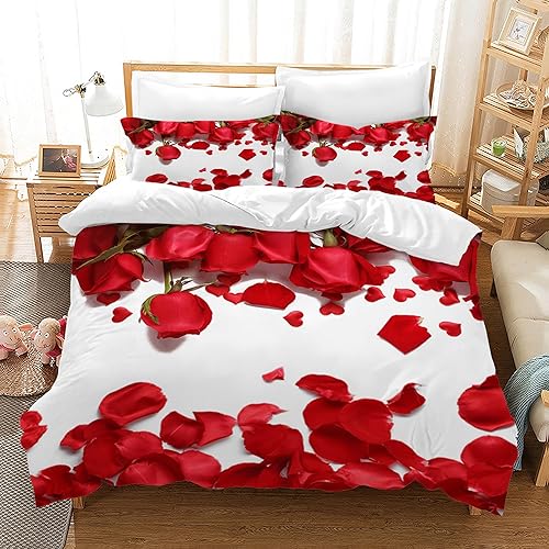 HZVRTN Parure de lit 3D Rouge Rose en Microfibre avec Housse de Couette et 2 taies d'oreiller en Microfibre - pour Adultes et Enfants - 220 x 240 cm