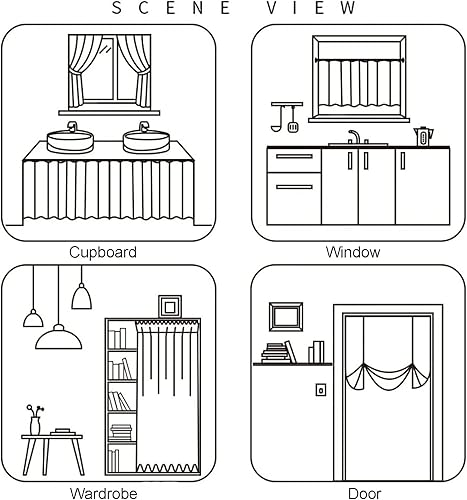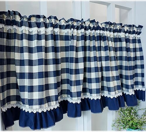 Rideau Brise-bise en coton et lin Bleu à carreaux de style rural, Rideaux de Café occultants courts, Rideaux de Cuisine pour fenêtres, cadres de porte, bibliothèques, armoires, passe-tringle ( Size