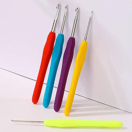 Plstod 9 Crochet Tricot Ergonomique, Aiguille en Caoutchouc Coloré Avec Poignée Souple (2/2.5/3/3.5/4/4.5/5/5.5/6 mm)