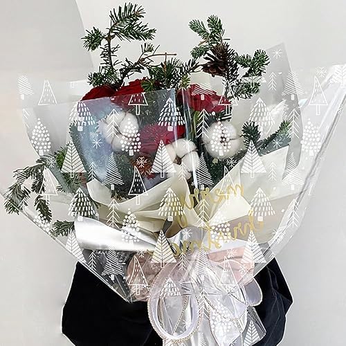 Rouleau de cellophane transparent imprimé avec arbre, rouleau de cellophane pour paniers, anniversaire, fête des mères, biscuits, cadeaux de Pâques - 80 cm