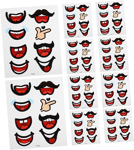 KONTONTY 10feuilles Autocollants De Bouche Auto-adhésifs Pour Diy Décalques De Visage Animés Stickers De Bouches Cartoons Pour Figurines Et Bricolage