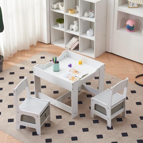 Bonnlo Table Enfant avec 2 Chaises, Table Enfant et Chaises avec Boîtes de Rangement, pour Chambre d'enfant, Gris