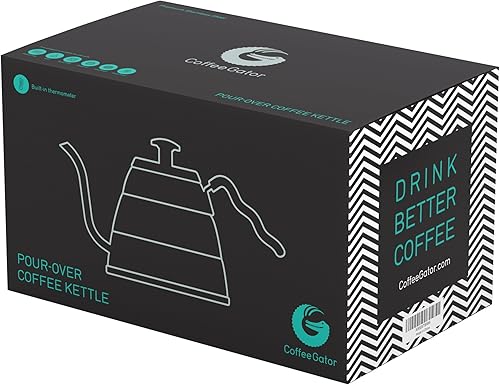 Coffee Gator Bouilloire avec thermomètre/Carafes à café et à thé/Bouilloire à col de Cygne/Acier Inoxydable