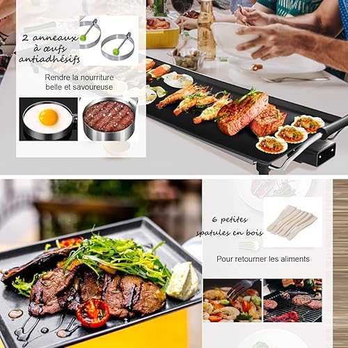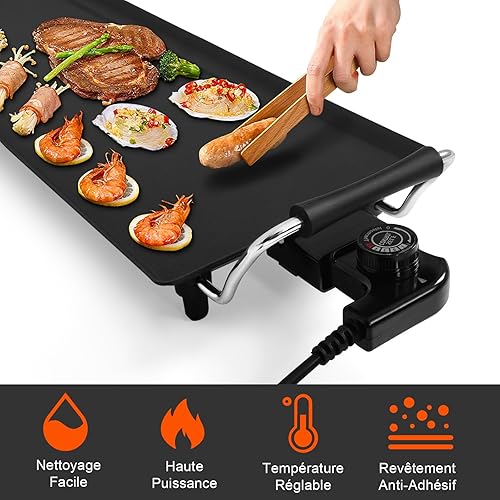 SOARS Plancha Électrique 1800W, Barbecue Électrique 90 X 23 CM, Revêtement Antiadhésif, Température Réglable sur 5 Niveaux, 6 Petites Spatules en Bois & 2 Anneaux Antiadhésifs Inclus, 8 Personnes Max