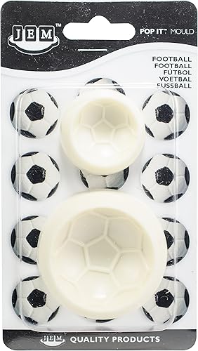 JEM 1102EP009 Lot de 2 Moule en Forme de Ballon de Football pour Décoration de Gâteaux, Plastique, Blanc, 6 x 2 x 6 cm 1102EP009