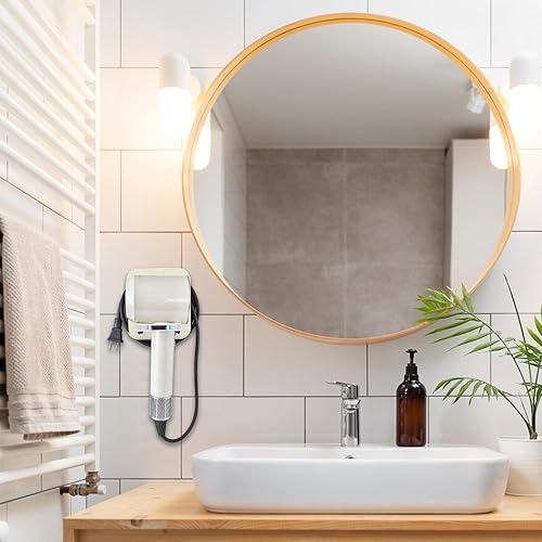MultiValue Porte Seche Cheveux Mural, Plastiques Support Seche Cheveux avec Autocollant Pliable Anti-Chute Support Seche Cheveux sans Percage pour la Chambre à Coucher Salle de Bain (doré)