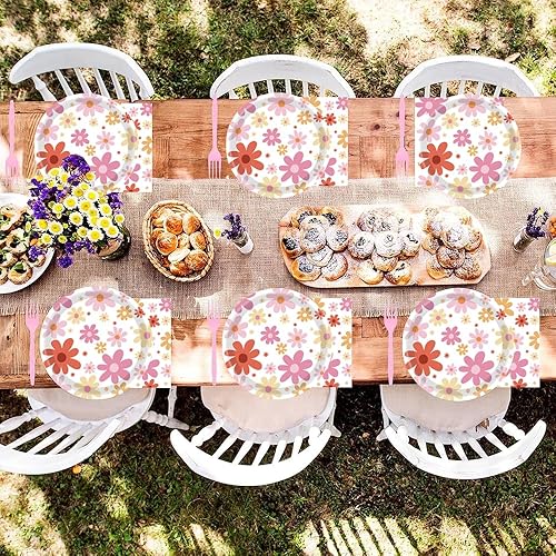 JAHEMU Marguerite Vaisselle de Fête Fille Anniversaire Décoration Bohême Fleur Vaisselle Jetable Set Marguerite Fournitures de Fête Anniversaire Boho Assiettes Gobelets Serviettes 16 Invités