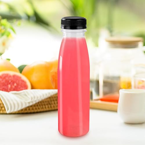 MOUYAT Lot de 30 bouteilles vides en plastique transparent de 300 ml avec couvercles noirs pour lait, boissons, jus