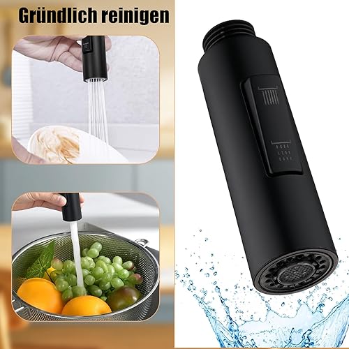 Douchette à main extractible 2 modes - Robinet de cuisine - Buse de rechange - Pommeau de douche en plastique - Robinet de douche - Douchette d'évier - Robinet de cuisine - Noir