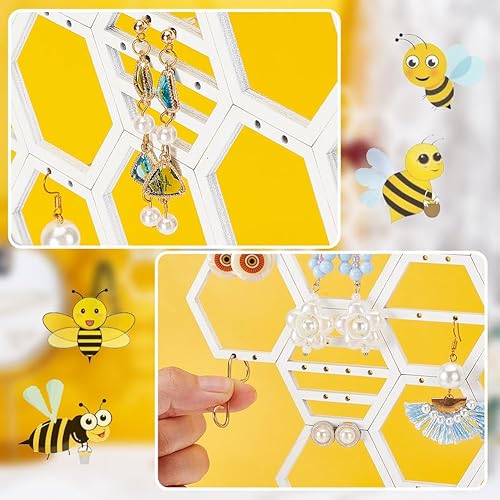 AHANDMAKER Support mural en bois à suspendre en nid d'abeille pour boucles d'oreilles, colliers, bracelets (blanc)