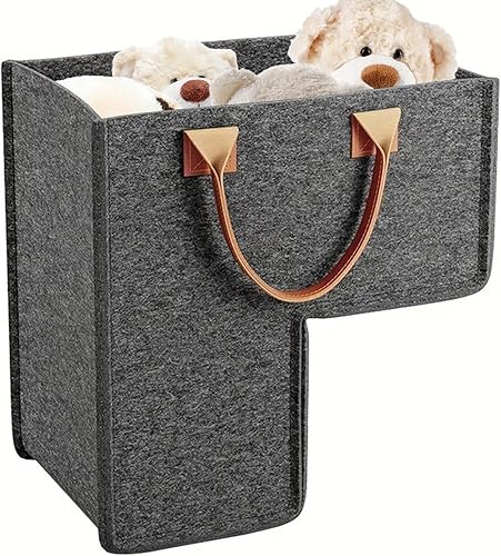 Panier d'escalier pliable en forme de L, panier d'escalier en forme de L, panier d'escalier avec poignées en cuir, pour linge, jouets, ménage, articles