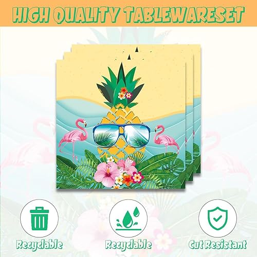 61 Pièces Décorations Fête Hawaïenne Été Set Vaisselle Réutilisable Anniversaire Tropical Ananas Feuilles Assiettes Tasses Serviettes Pailles en Réutilisables Nappe de Table Thème Cartoon Été