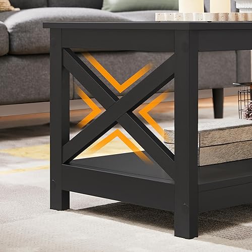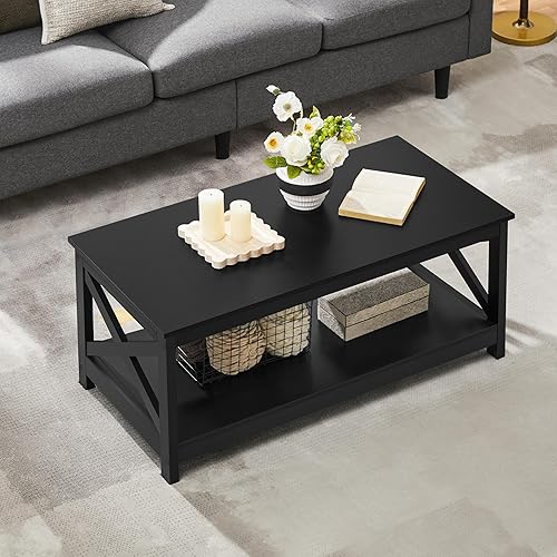 Yaheetech Table Basse de Salon en Bois Moderne Pied X avec 1 Étagère de Rangement Ouvert Meuble de Salon Bureau Chambre Noir 100 x 50 x 45 cm