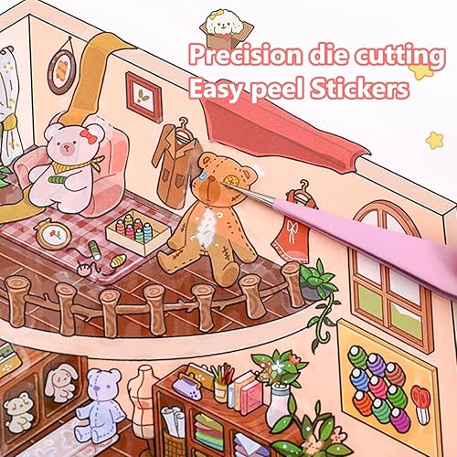 Wnqou Lot de 20 Autocollants de Maison 3D à Faire soi-même, Livre de Collection 3D, scène 3D, cabane Miniature simulée Jeu de scène, Autocollants de Dessin animé Mignons pour Adultes et Enfants