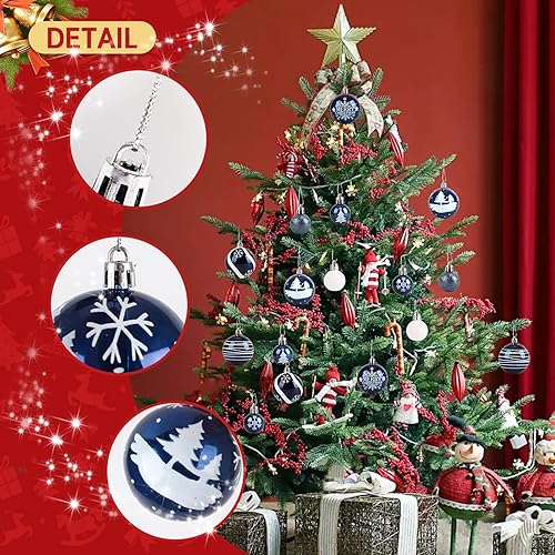 ilauke 6cm Boule de Noël Rouge et Blanc,16 Boules de Sapin de Noël en Plastique,7 Styles Boule d'arbre de Noël Incassables à Suspendre pour Sapin Noël,Mariage,Fête,Décoration Intérieur Extérieur