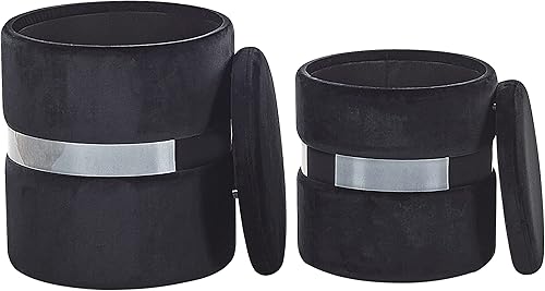 Lot 2 Poufs Coffres de Rangement en Velours Noir avec Ceinture en Acier Argenté Idéals pour Chambre ou Salon au Design Glamour et Chic Beliani