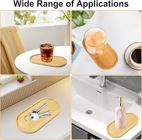 Parastar Lot de 2 plateaux en bois décoratifs - Plateau ovale en bambou - Plateau décoratif en bois pour dessous de verre - Plateau en bois pour dessous de verre - Plateau de service en bois - Plateau