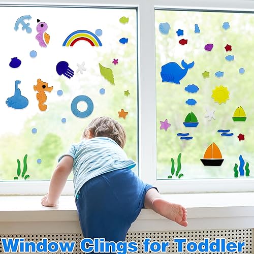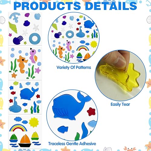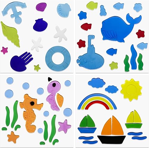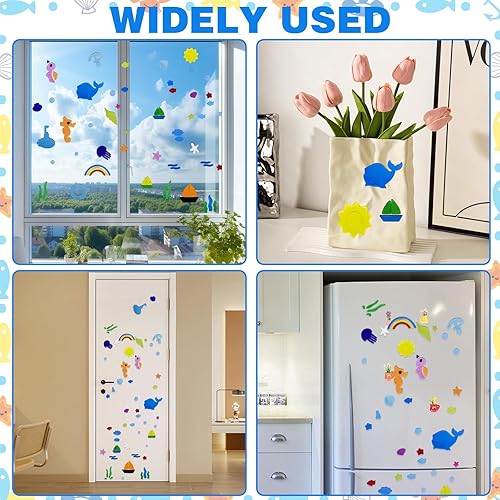 Lot de 4 autocollants en gel pour fenêtre d'été, colorés et saisonniers, pour tout-petits, motifs coquillages, accessoires décoratifs pour l'école, la maison, le bureau, la salle de bain, la crèche