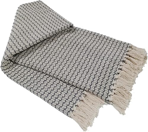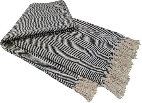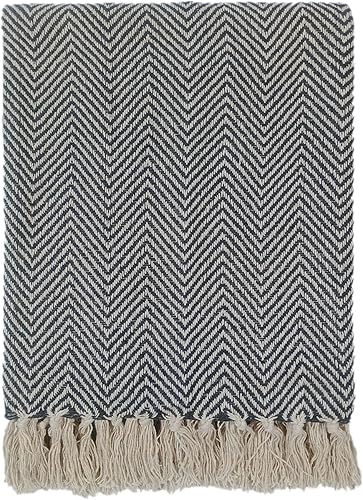 Olivia Rocco Couverture écologique super douce en coton recyclé confortable, durable, parfaite pour votre canapé, lit ou chaise, légère, anthracite Tanger, 127 x 152 cm