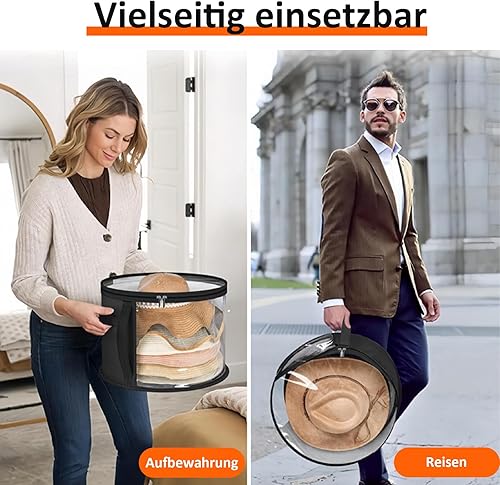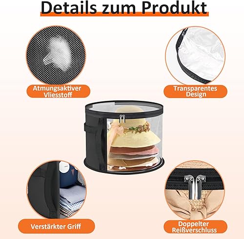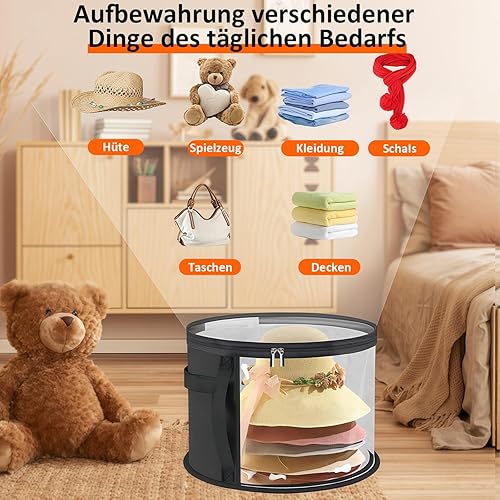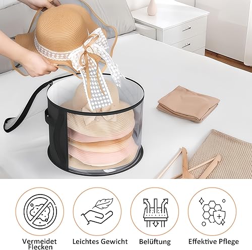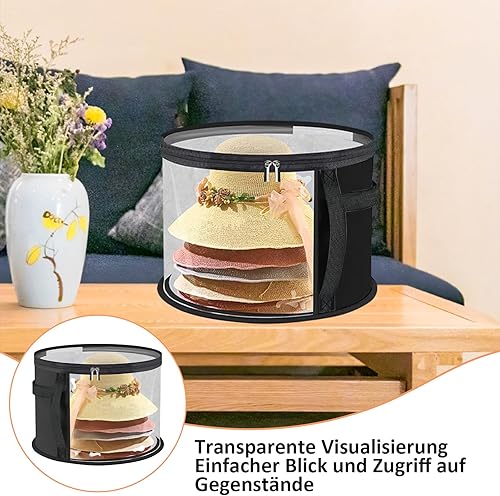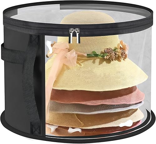 Biliant Boîte à chapeaux ronde avec couvercle, boîte de rangement ronde, avec fenêtre transparente et poignée stable, rangement pour grands bonnets ronds, casquettes de cowboy