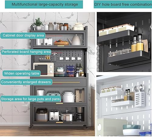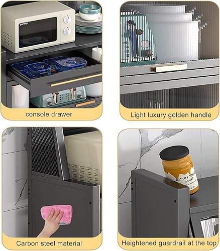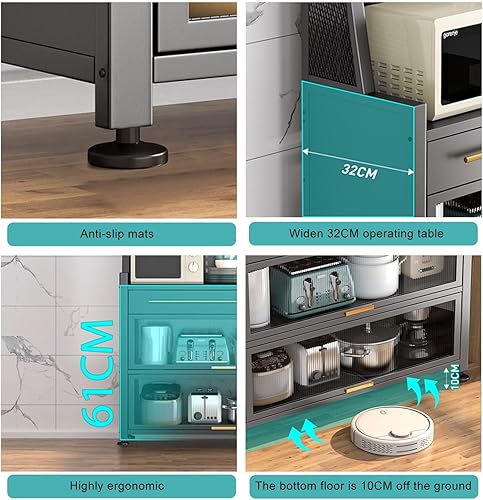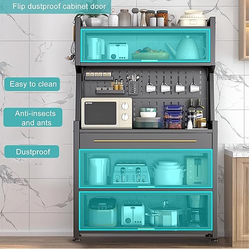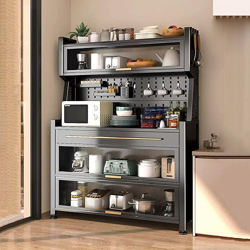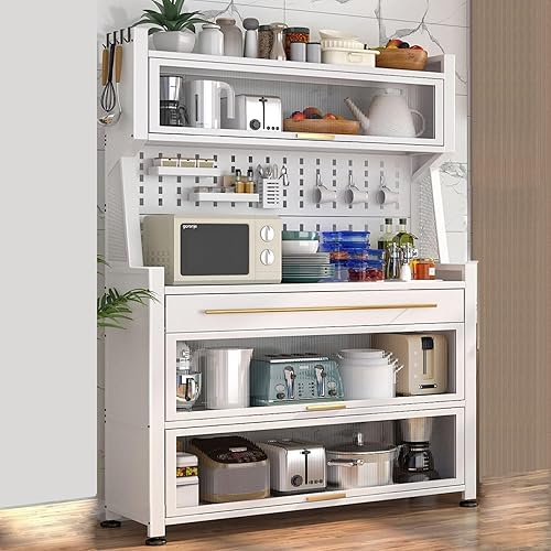Meuble de rangement autoportant pour cuisine – Support pour micro-ondes avec porte rabattable et tiroir – Pour salle à manger, salon, cuisine