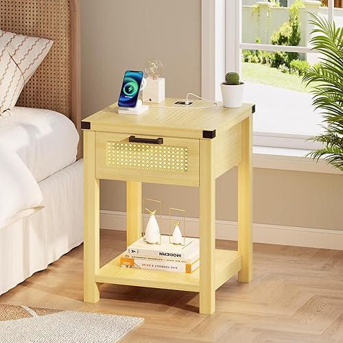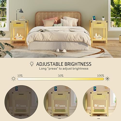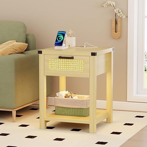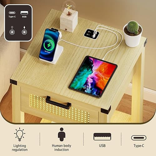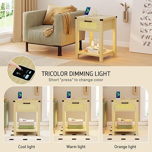 Lvifur Table de Chevet avec lumière LED Tricolore, Table de canapé avec Chargement USB, Table Basse, Table de Salon avec tiroirs, Table de Chevet pour Salon