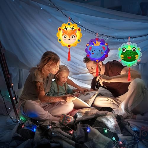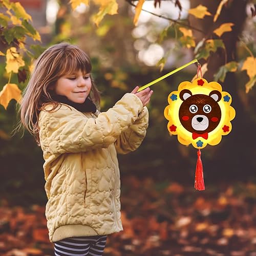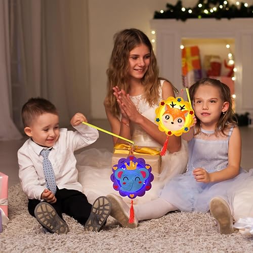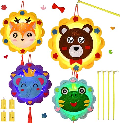 Lot de 4 Lanternes - Kit de Bricolage pour Enfants - Jouets - Déménagement - Styles d'Animaux Mignons - Bâton Inclus