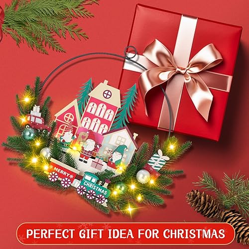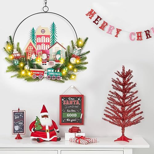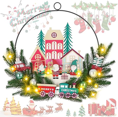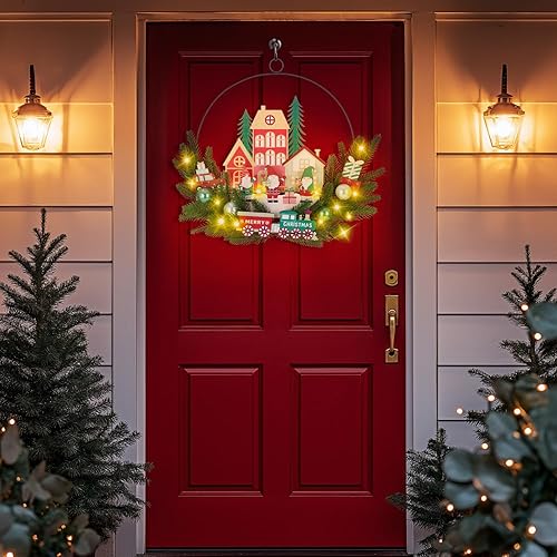 Couronne de Noel Porte avec LED, Couronne de Noel Porte Exterieur, Decoration Noel Porte Exterieur, Couronne de Noel a decorer pour Porte d'entrée, Cheminée et Décoration Murale (Rouge)