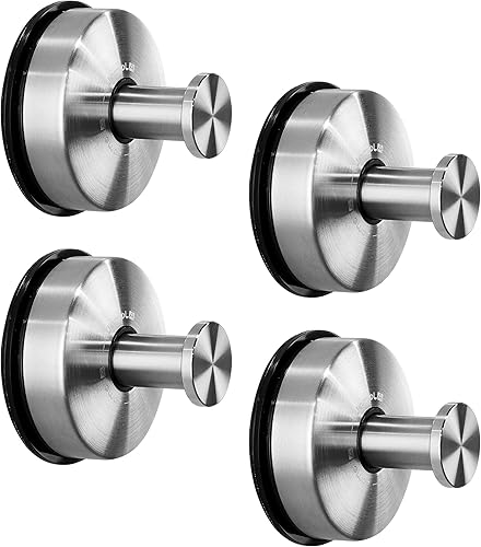 JOMOLA Crochet Ventouse Crochet Porte Serviette à Ventouse Accroche Torchon En Inox Barre Crochet Cuisine Ventouse pour cuisine et salle de bain, douche, manteaux etc, 4 Pièces