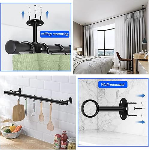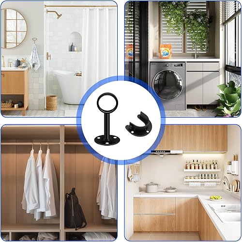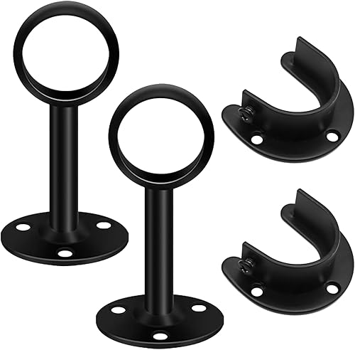 2 Set Support Tringle - 32 mm Acier Inoxydable Supports pour Tringles à Rideaux , Durables et Résistants à la Rouille , Tube à Bride Ouverte, pour Porte-Serviettes et Penderie - Noir (4 Pièces)