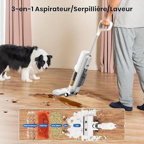 Proscenic F10 Pro Aspirateur Laveur sans Fil,Aspirateur Eau et Poussière,Aspirateur Balai sans Fil Humide et Sec,1.15L Réservoir,Autonettoyant,Léger,Pour Nettoyage Bord Les Saletés Collantes,Sols Durs