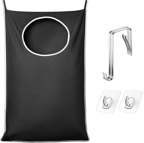 ANSTROUT Panier à linge XL noir à suspendre à une porte, sac à linge XL à suspendre avec grande ouverture et 2 crochets solides pour toute la famille vêtements sales, grande taille 91 x 57 cm, sac à