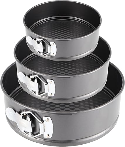 KEILEOHO Lot de 3 moules à gâteau, ronds, 16/18/20 cm, anti-fuite, avec fond amovible et fermeture en métal, pour gâteaux, pain, fromage, noir