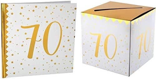 Santex 1 Pack urne et Livre d'or Anniversaire Or et Blanc 70ans