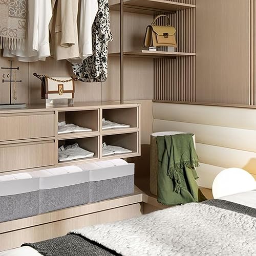 LDXDRU Lot de 4 paniers de rangement pliables en tissu avec poignées, boîtes de rangement, Caisse Rangement pour Kallax, étagères, vêtements, jouets, armoire, 36 x 26 x 18 cm